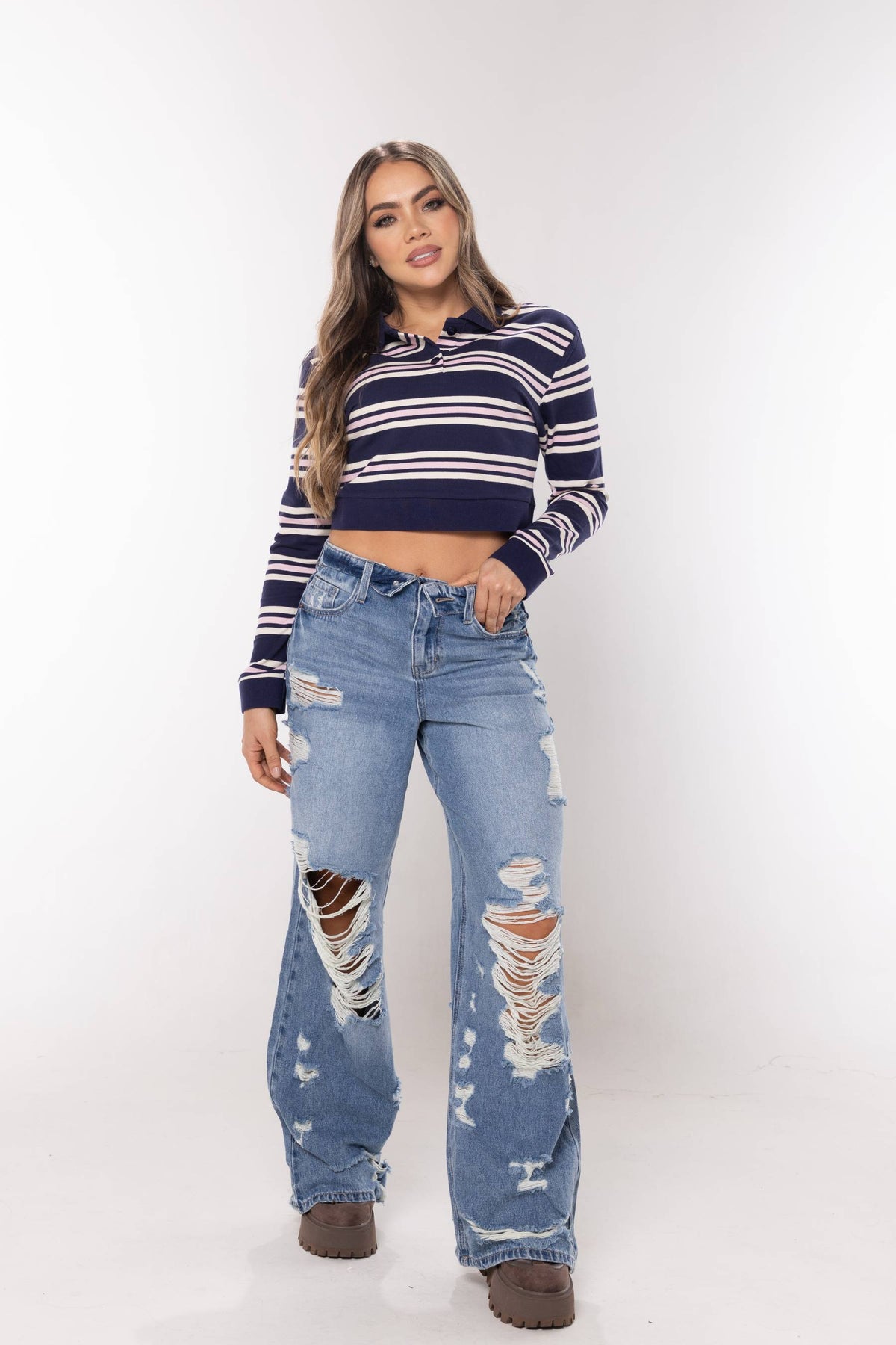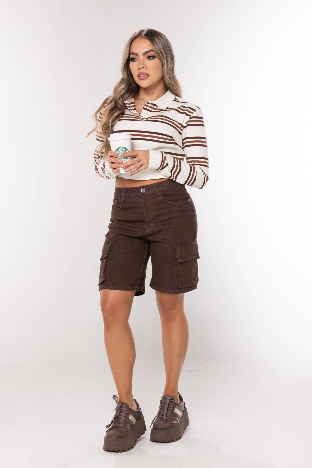 Buso tipo polo mangas entalladas, tejido acanalado y elastico.