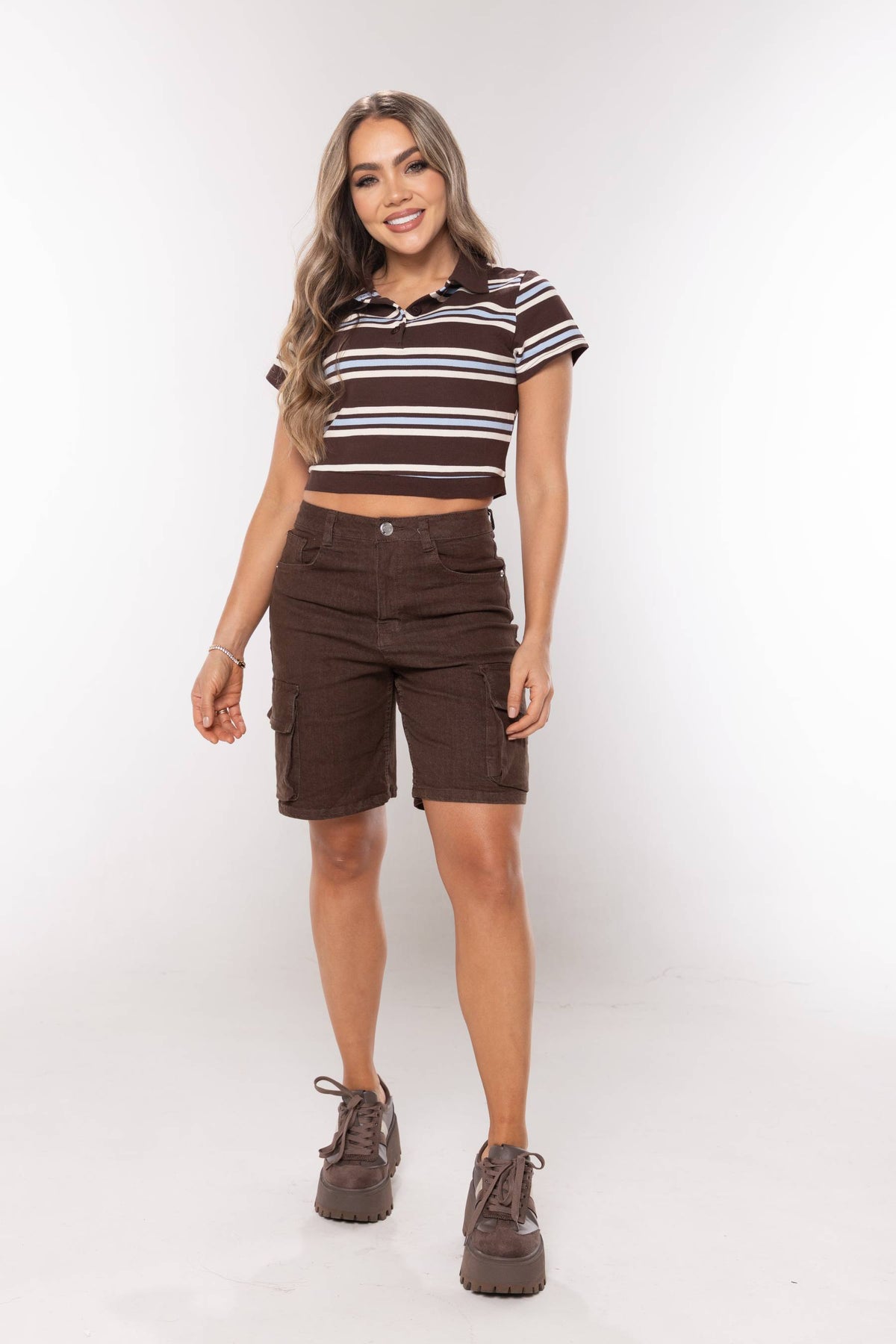 Camiseta tipo polo con botones funcionales, mangas cortas entalladas, tejido acanalado y elastico.