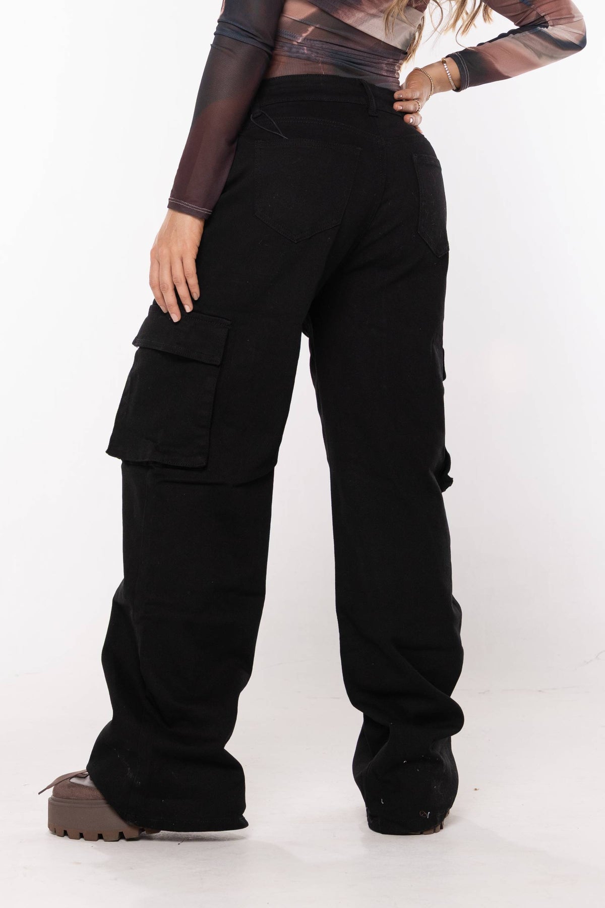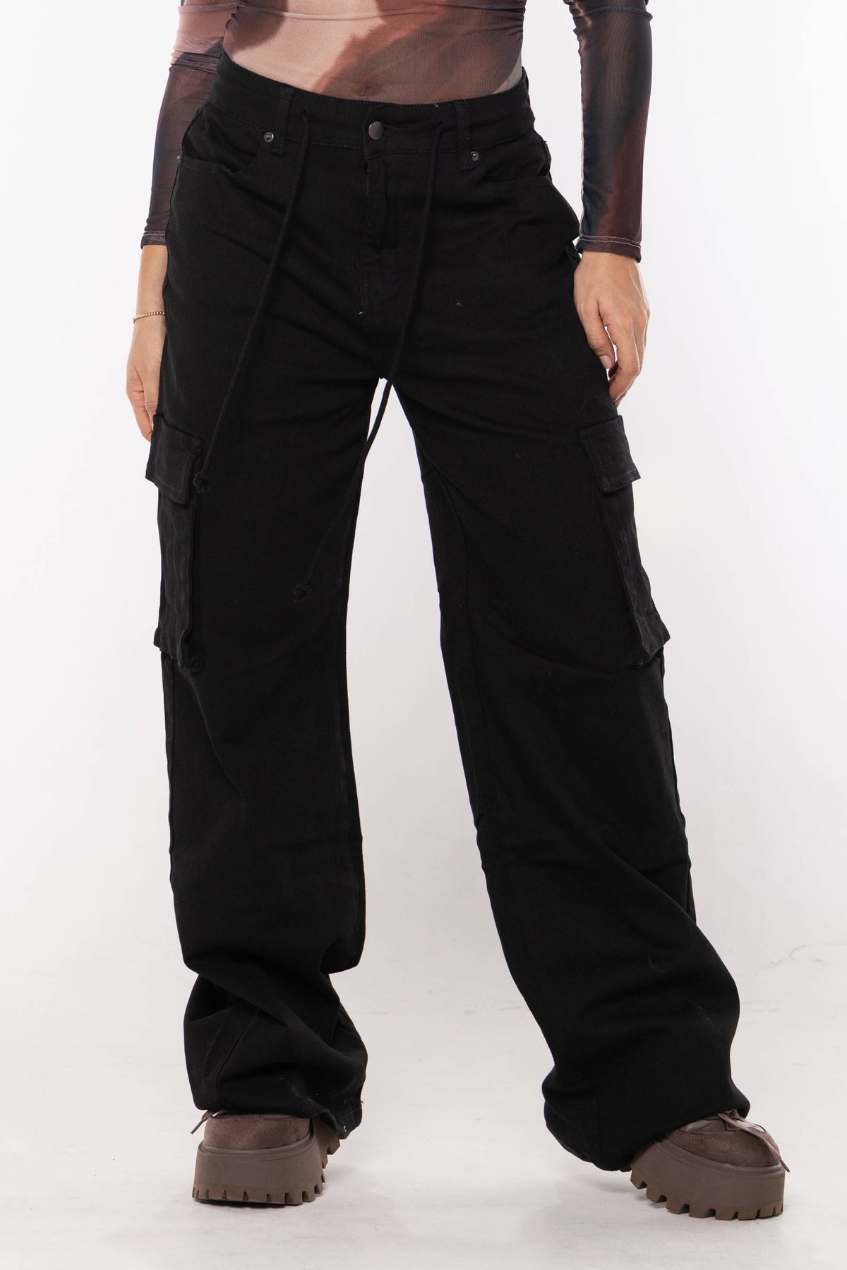 Pantalon de bota recta y silueta amplia en tela stretch, con bolsillo laterlares, traseros y en cargo.