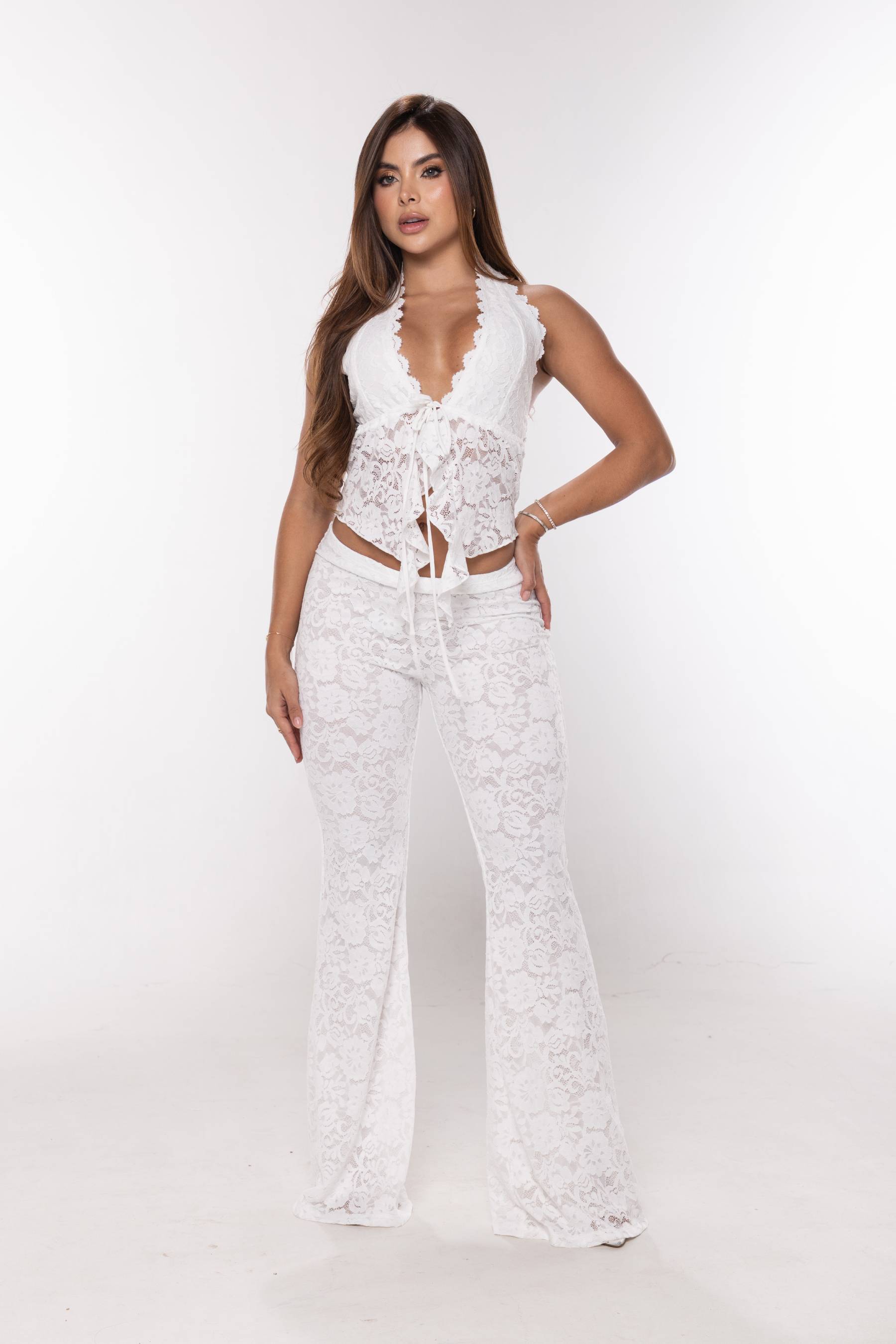Set pantalon en bota recta y clasico, con chaleco sin mangas a juego, con cuello redondo y botones dorados frontales, en tela licrada.