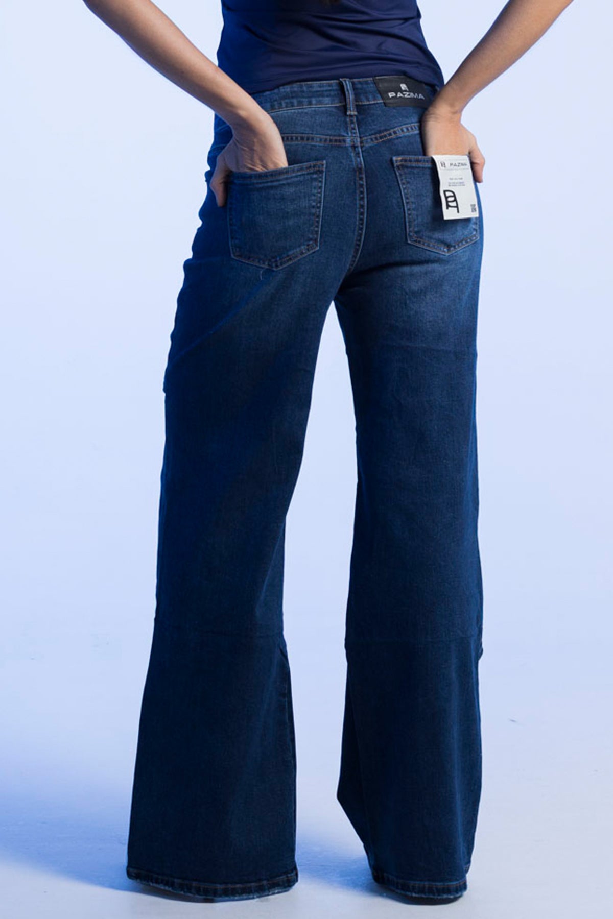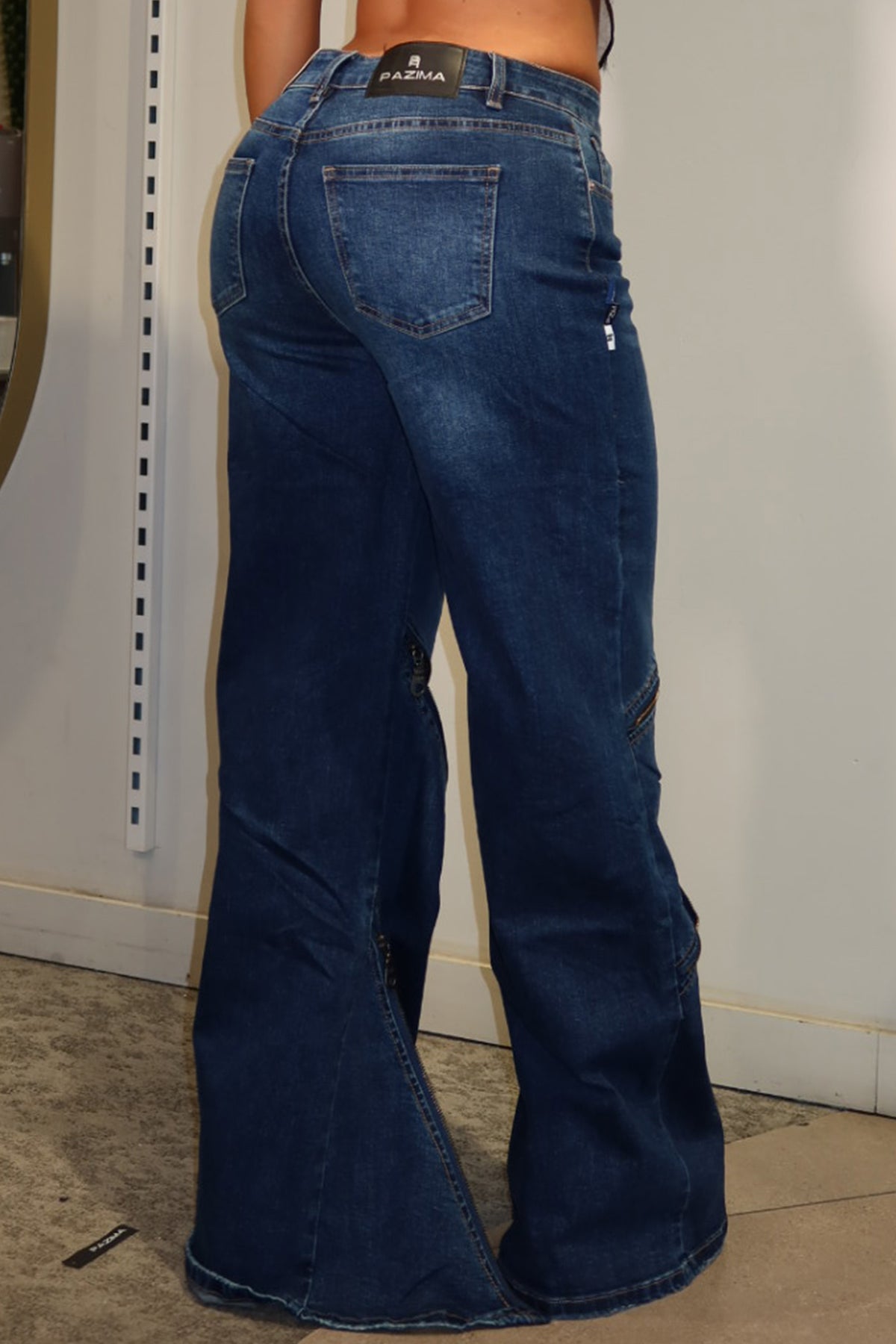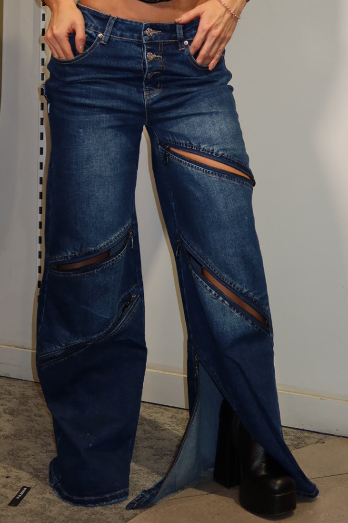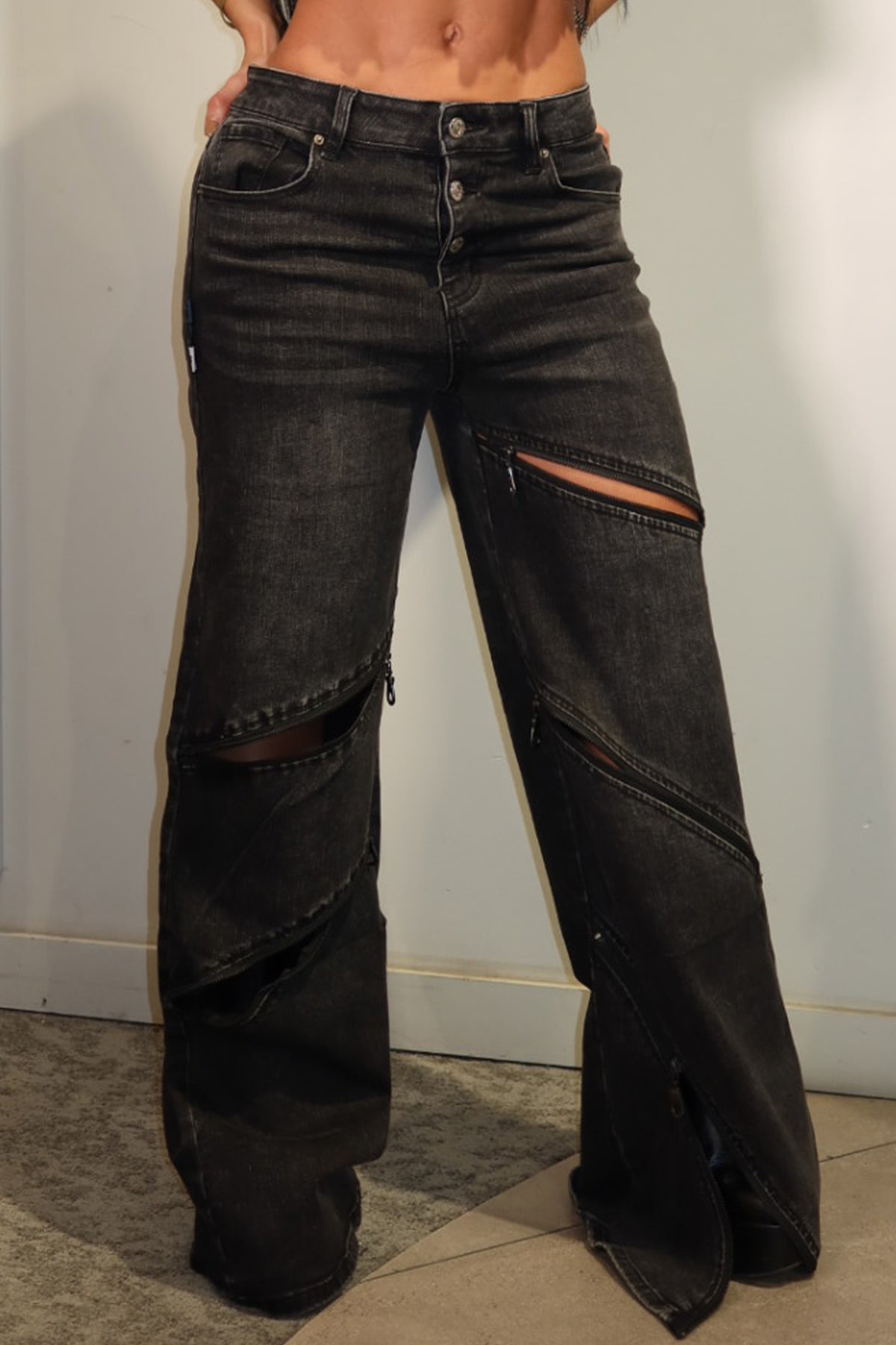 Jean con cierres diagonales en la parte frontal y bolsillos funcionales
