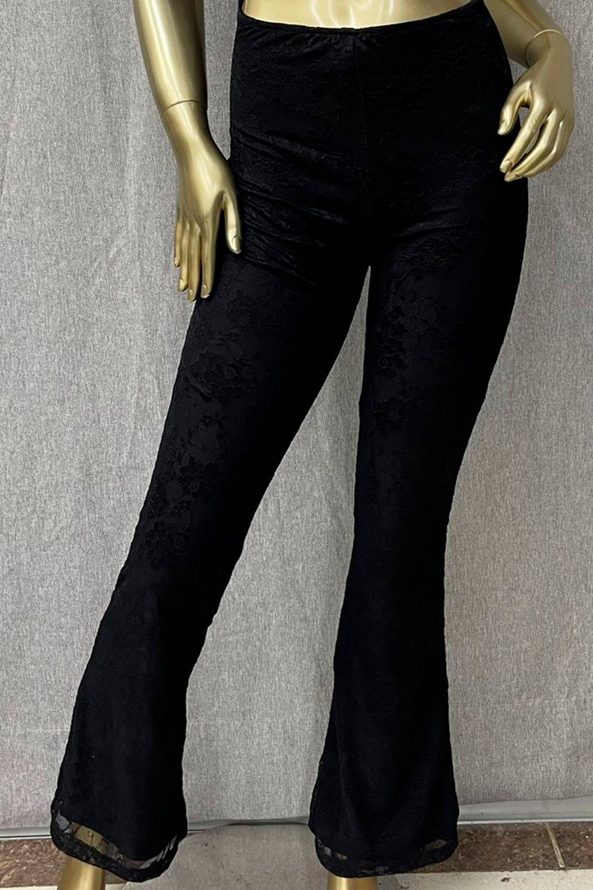 Enterizo de pantalon largo con croptop en blonda con escote en V