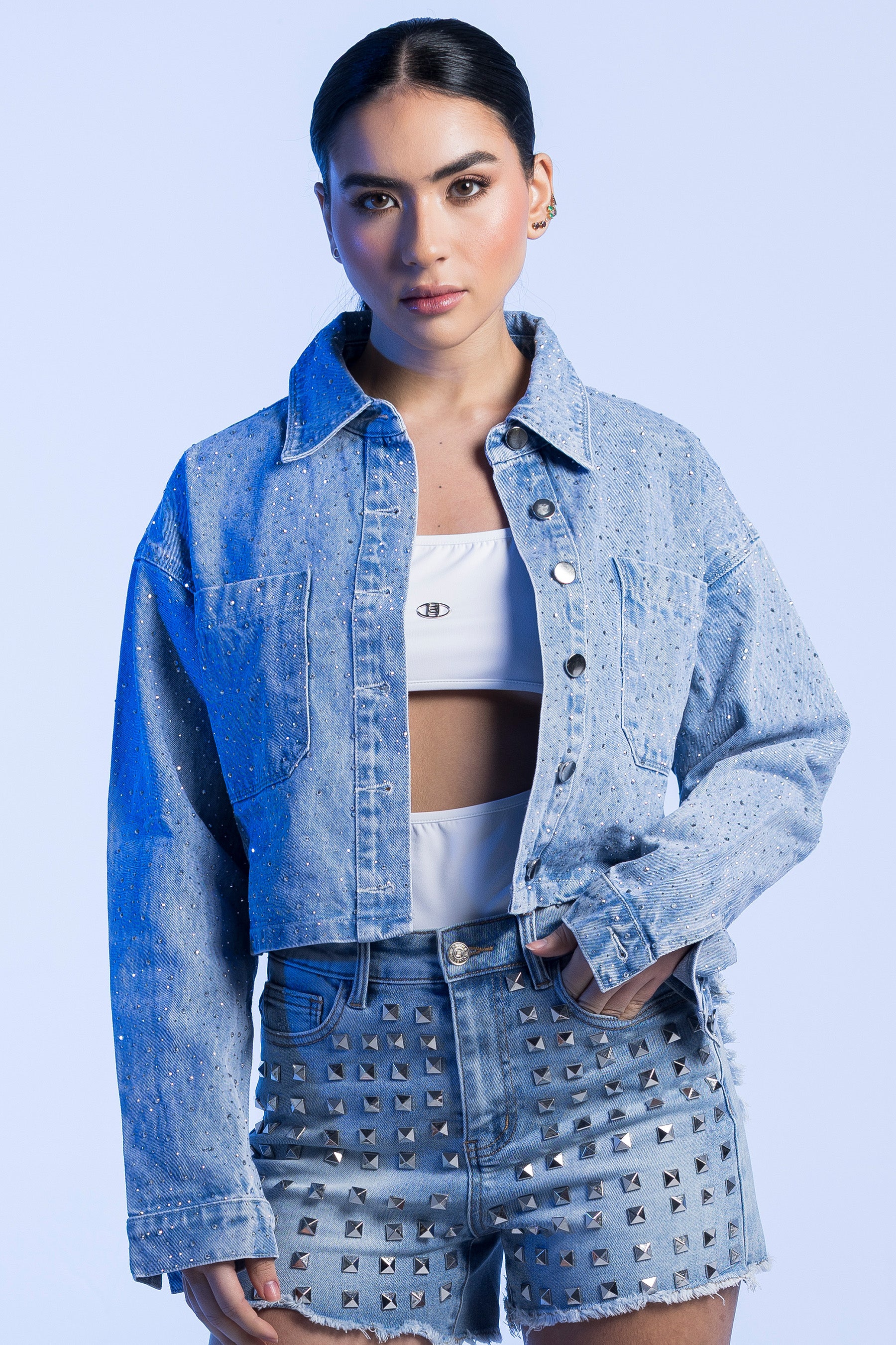 Set de pantalon largo con tejidos laterales y bolsillos, con un croptop con diseño tejido en la parte delantera y tiras ajustables en hombros