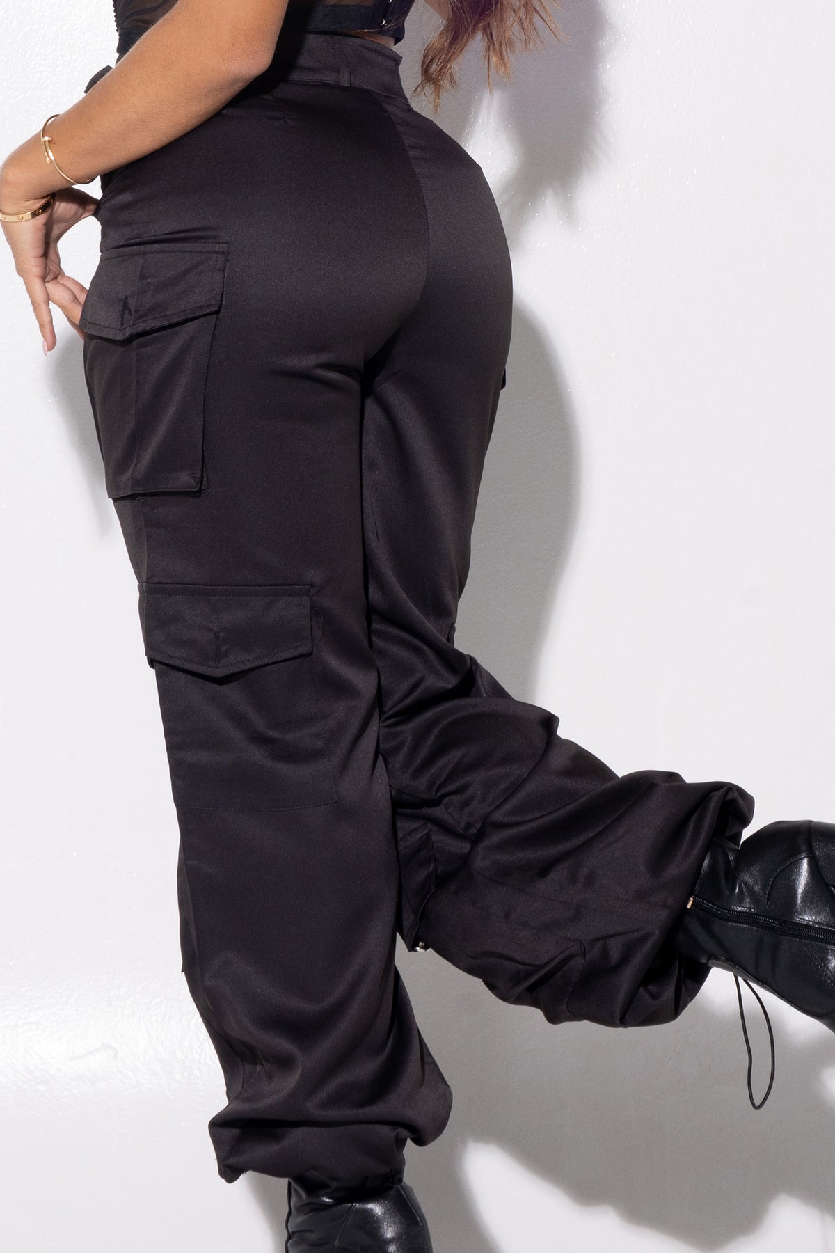 Pantalon tipo cargo, con correas en la pretina y bolsillos, con amarres en bota, tipo parachutte