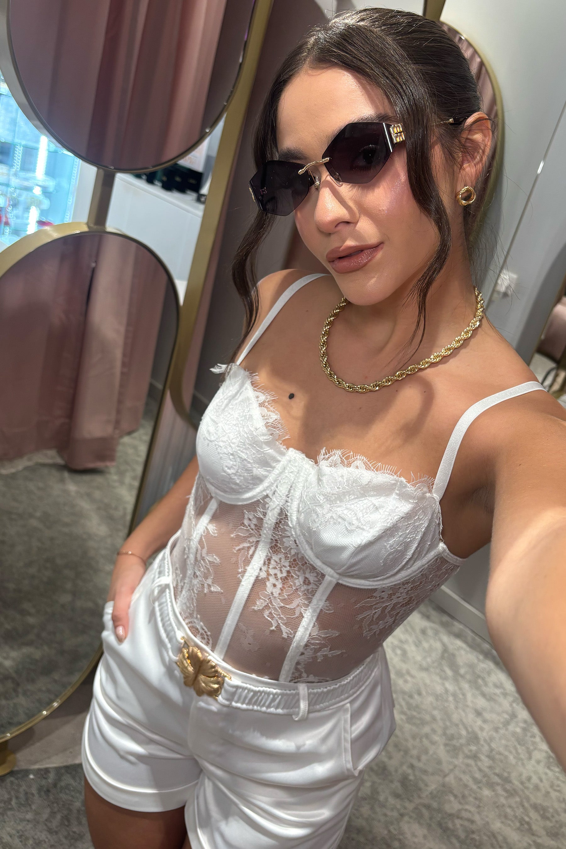 Croptop con tiras ajustables en hombros, broches en espalda y multiples perlas en la parte delantera