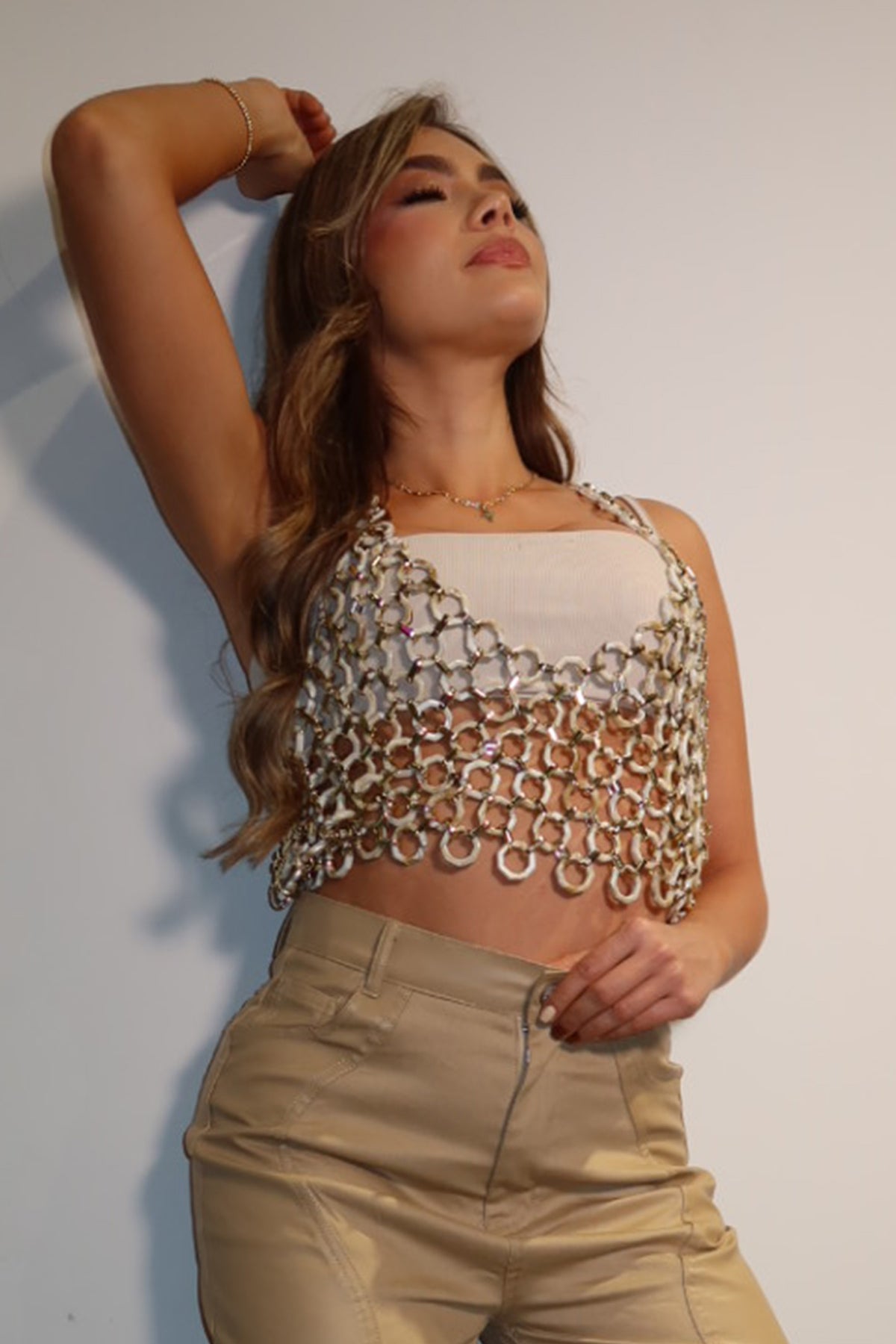 Sobrepuesto en aros en blanco y dorado con broches en la parte trasera