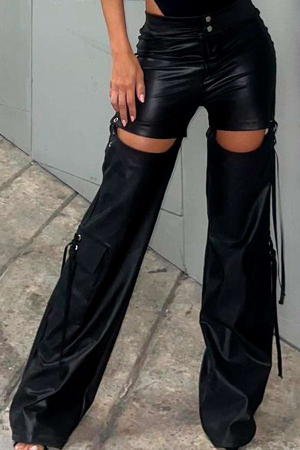 Leggins en efecto cuero, con bolsillos funcionales y aberturas en rodillas