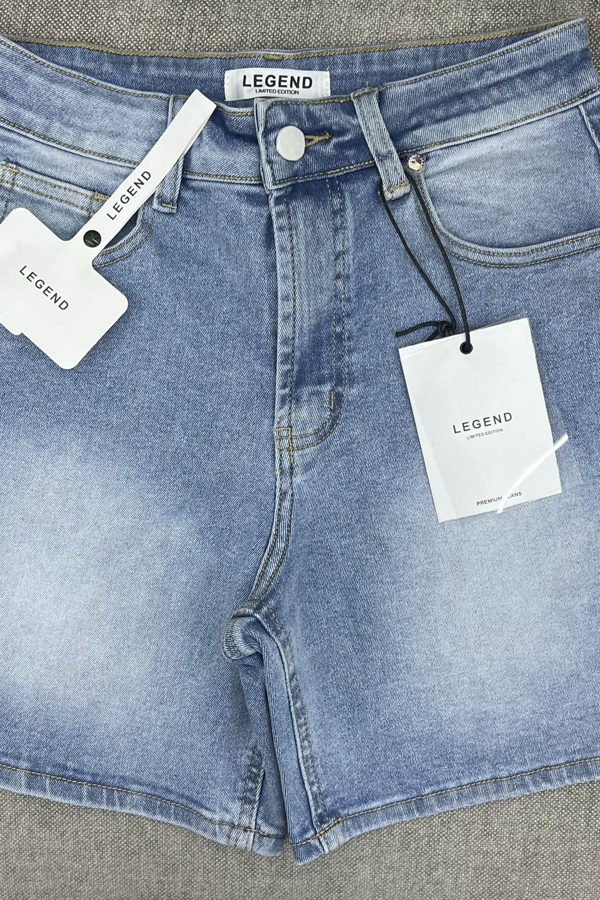 Short clasico en denim claro con bolsillos funcionales, ancho