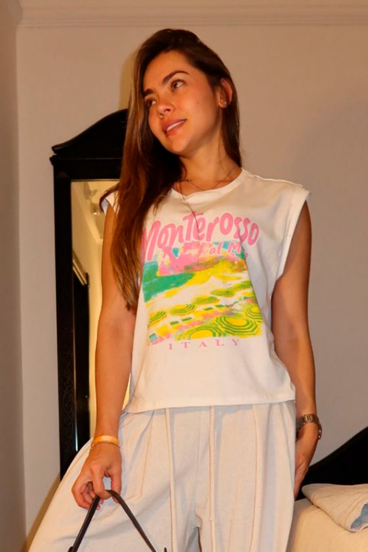 Camiseta manga siza con cuello redondo y estampado en colores