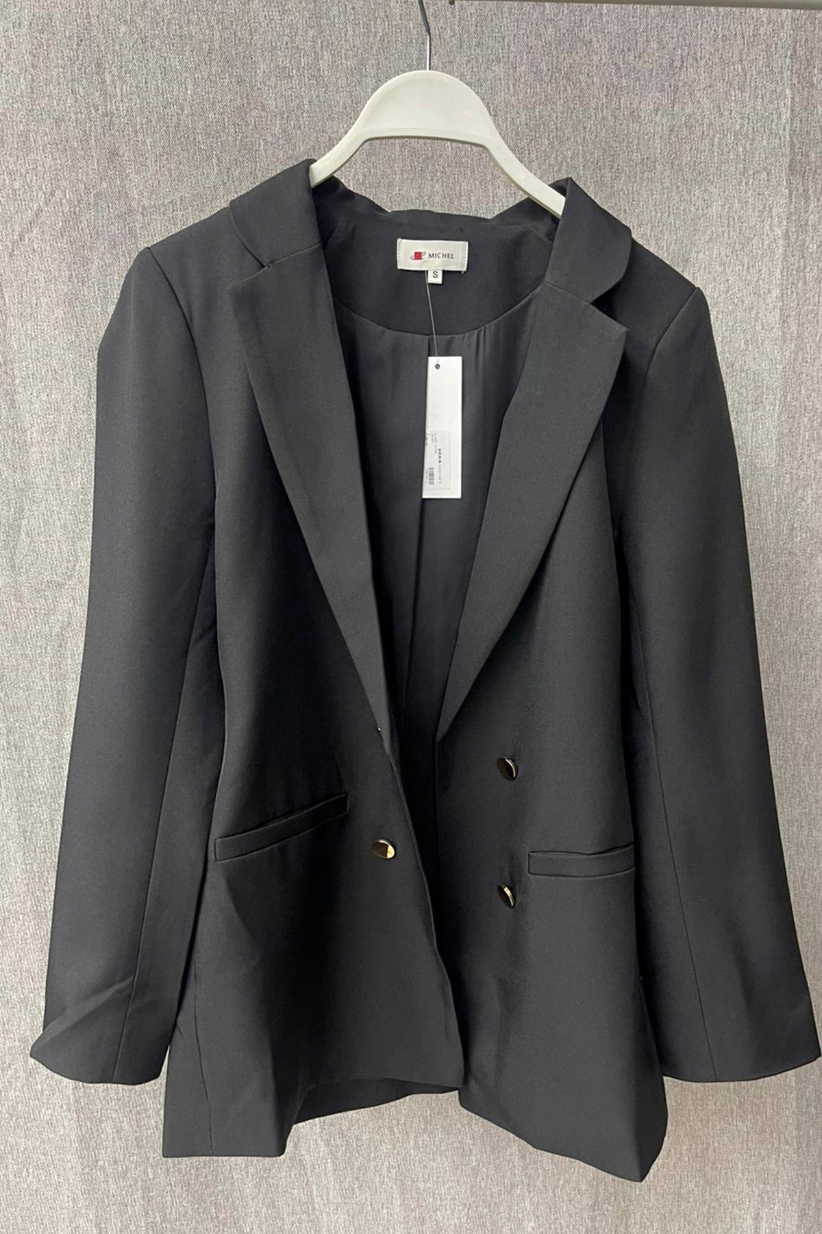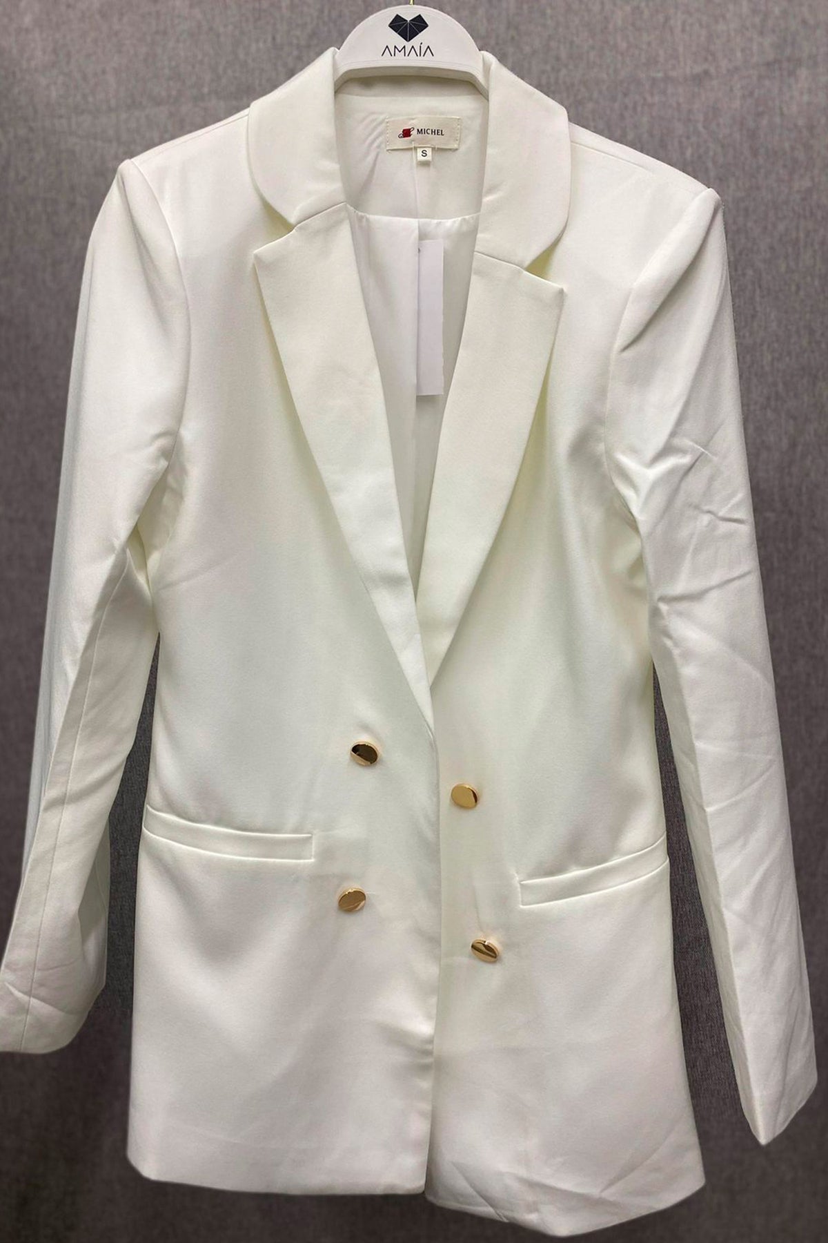 Blazer largo con botoenes dorados en la parte delantera, no funcionales