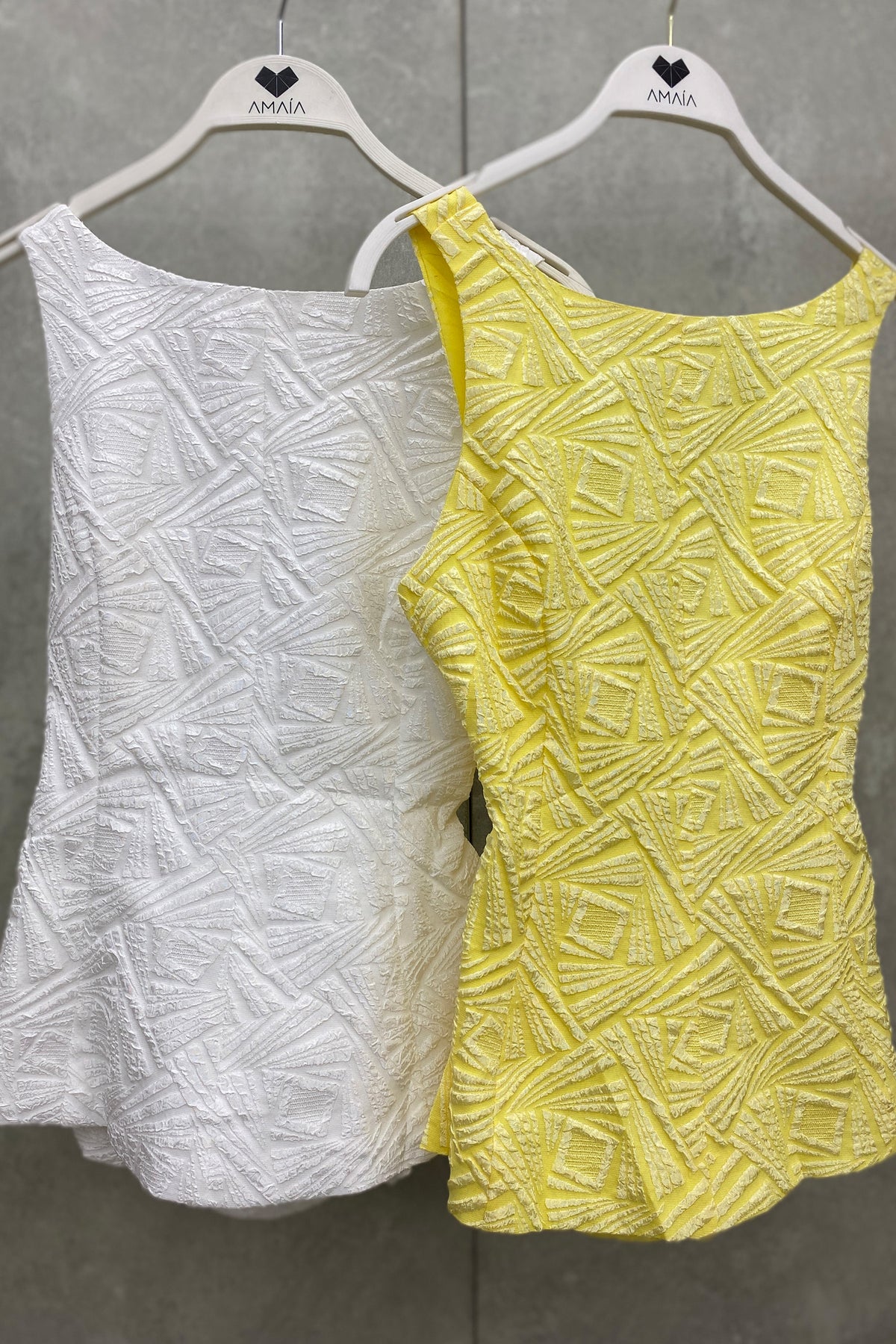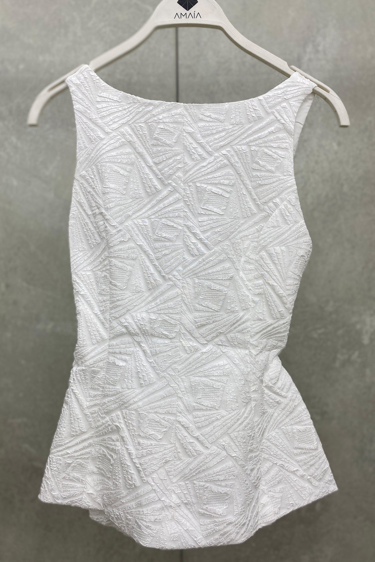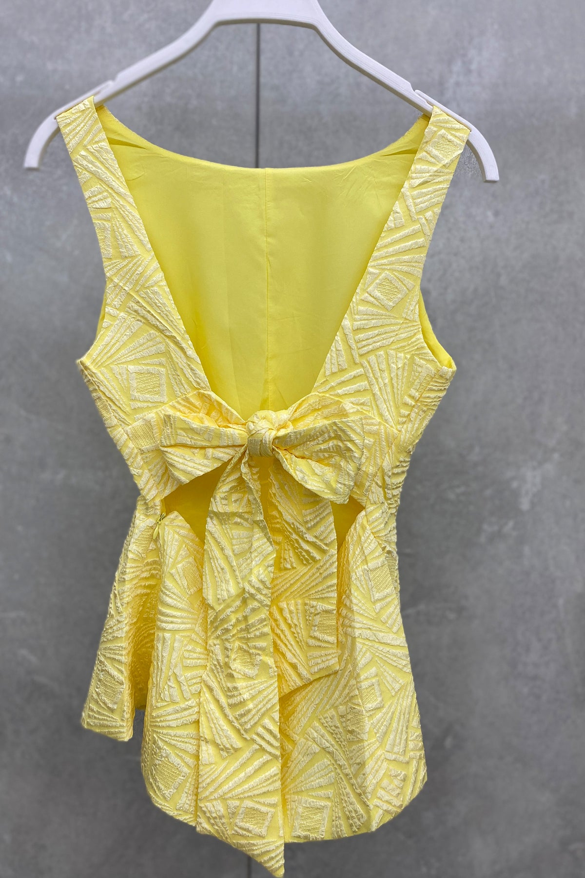 Blusa con manga siza, cuello redondo con escote en espalda y moño con tela en diseño